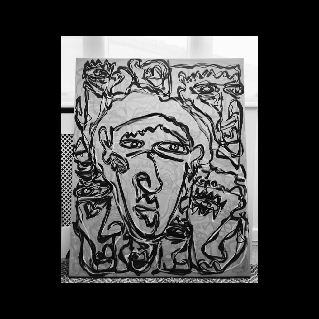 At school, there wasn’t much to report — “I was alright at school … I couldn’t stand being there but I could do the work I needed to in order to get through it” — although he did show a natural flair for art, which he ended up studying at A-Level. “I remember my art teacher used to teach us about specific things, like still life or whatever, but she’d just let me do graffiti because I was good at it and enjoyed it”, he recalls. It’s a passion he’s revisited during lockdown, painting and drawing in his studio whenever inspiration struck. “If I was interested in stuff, I’d put a bit of effort in but otherwise I just wasn’t interested you know”, he says.